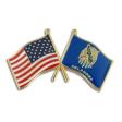 Show off your state pride and patriotic spirit with this beautifully designed Oklahoma (OK) and USA Crossed Flag Pin. Perfect for patriotic and political events, community service positions and recognition gifts. This pin is die struck from jeweler's metal, enamel color filled, plated in gold and epoxy coated for lasting durability. Each pin includes two standard clutch backs and is individually poly bagged.