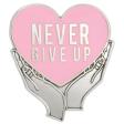 Raise awareness and hope with our Pink Never Give Up Pin. It is made using the jewelry-quality cloisonné process with enamel color fills. The background is sandblasted, and nickel plated then polished for a smooth look. This pin is a great gift when showing your support for pink awareness and Breast Cancer Awareness. Our Never Give Up Pins include a standard clutch back and are individually poly bagged.