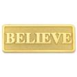 Our Believe Lapel Pin is die struck from jeweler's metal, plated in gold, and polished to shine. The background of this design has a sandblasted finish that allows the letters to stand out! Great for motivation and inspiration. This Believe pin includes a standard clutch back and is individually poly bagged.